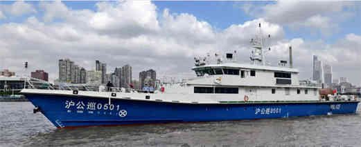 该型艇总长55米,型宽7.6米,型深4.2米,航速可达23节,主要承担上海所辖水域的治安维护、110应急接警、突发情况应急处置等任务。