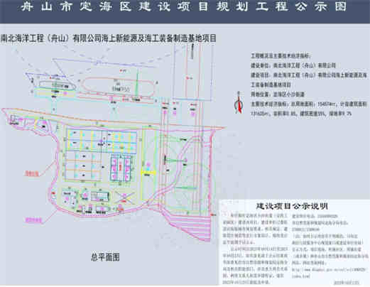 公开资料显示,南北海洋工程(舟山)有限公司为外资企业,是South North links Ltd全资子公司,法定代表人为FUJIWARA MASANNORI,注册资本5000万美元,营业范围:一般项目:海洋工程装备制造;海洋工程平台装备制造等。该公司投资在长白岛后岸区块建设海上新能源及海工装备制造基地项目,计划总投资1亿美元,计划用地约232亩,配套使用岸线750米。