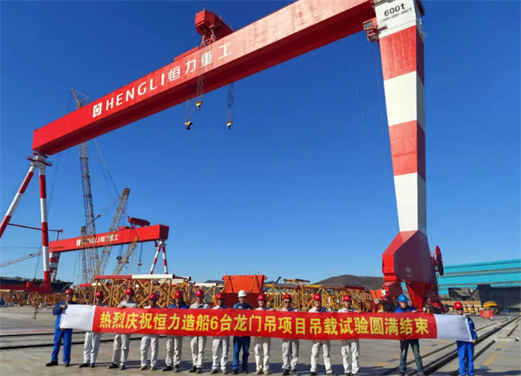 近日,振华重装承建的恒力龙门吊项目600吨2号机在业主与特检院的共同见证下,顺利完成荷载试验。至此,该项目6台龙门吊吊载试验圆满收官,正式迈入交付收尾阶段。