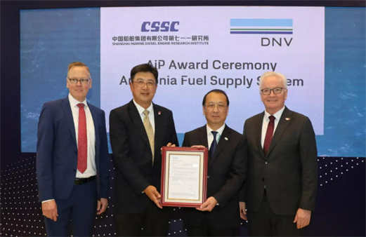 12月2日,在2025年中国国际海事展览会上,中船集团七一一所自主研制的船舶氨燃料供给系统(AFSS)及LNG运输船-加注船液货处理系统(CHS)正式获DNV船级社颁发的AiP原理证书。此次获证标志着七一一所在零碳燃料供给及清洁能源储运核心赛道已具备领先的技术储备。