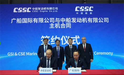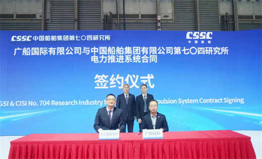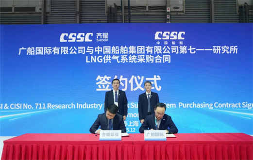 在出席签约仪式的领导和嘉宾的见证下中船广船国际和合作伙伴签署采购合同