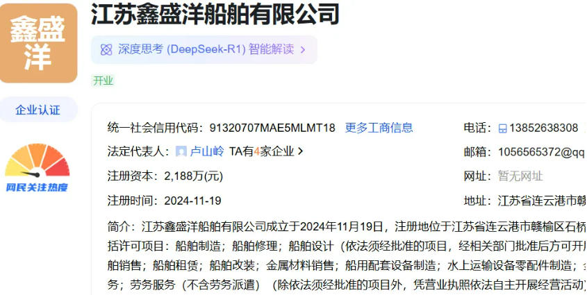 公开资料显示,江苏鑫盛洋船舶有限公司成立于2024年11月19日,注册地位于江苏省连云港市赣榆区,法定代表人为卢山岭。经营范围包括许可项目:船舶制造;船舶修理;船舶设计等。此次备案批复与产能认定,为该公司开展船舶建造业务奠定了坚实基础。项目落地后,将有助于进一步整合赣榆区的船舶修造资源,稳定并提升地方制造业产能。