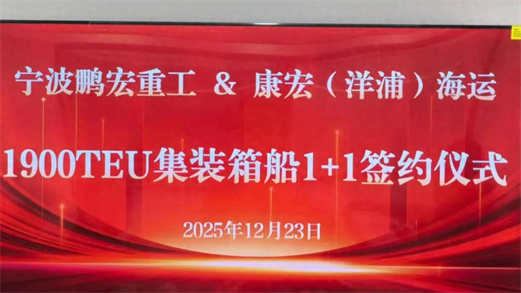 船海装备网消息,2025年12月23日,宁波鹏宏船舶重工有限公司(以下简称“鹏宏重工”)与康宏(洋浦)海运公司成功举行1+1艘1900TEU集装箱船建造项目签约仪式。此次合作标志着新成立的鹏宏重工正式进入主流集装箱船建造市场。