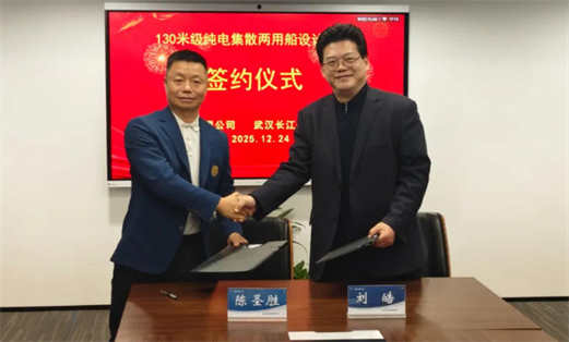 12月24日,武汉长江船舶设计院有限公司与江西赣锋航运有限公司在武汉举行《130米级纯电集散两用船设计合同》签约仪式。江西赣锋航运有限公司董事长陈圣胜、武汉长江船舶设计院有限公司总经理刘皓分别代表双方落笔签约。