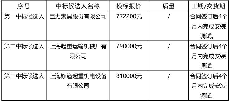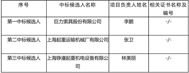 上海江南长兴造船有限责任公司300T门式起重机滑轮吊排、起重吊排中标候选人公示