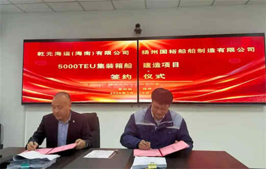 时隔50分钟,上午10时28分,公司与乾元海运(海南)有限公司就另一艘5000TEU集装箱船建造项目举行签约仪式。双方代表共同签署建造合同,标志着该项目正式落地,合作进入实质性推进阶段。