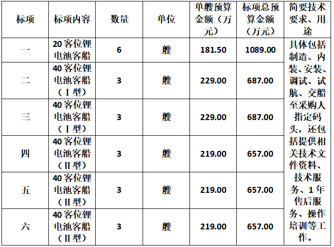 浙江省成套招标代理有限公司受杭州市西湖游船有限公司委托,就2026年度锂电池客船(第三批)采购项目进行采购,欢迎国内合格的供应商前来参加。