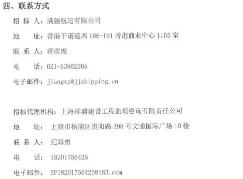 满强航运有限公司2025年度新造船项目中标结果公示