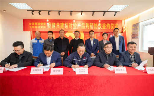 在与会嘉宾共同见证下,金海智造党委与飞鲸新材党委正式签署党建联建协议,确立“组织共建、资源共享、人才共育、产业共兴”四大合作方向。通过建立季度联席会议、联合主题党日、党务人才互培等机制,着力打造“红色引擎”驱动产业升级的示范样本。同步签署的产品购销协议,标志着党建联建成果成功转化为产业链协同发展实效,形成“以党建强根基、以合作促发展”的双向赋能格局。