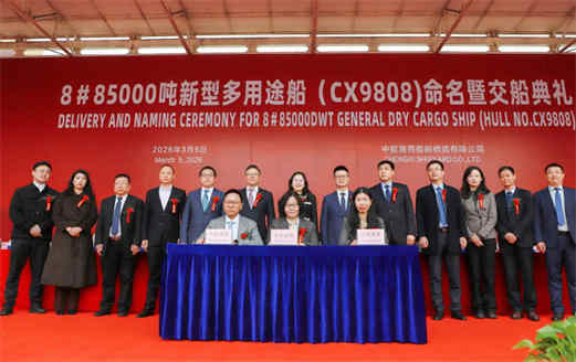 3月5日,中船集团旗下中船澄西船舶修造有限公司为中信金融租赁有限公司建造的8号84500吨干散货船“CSPC SAGITTARIUS”轮在中船澄西扬州基地命名交付,这是中船澄西今年交付的第7艘新造船。
