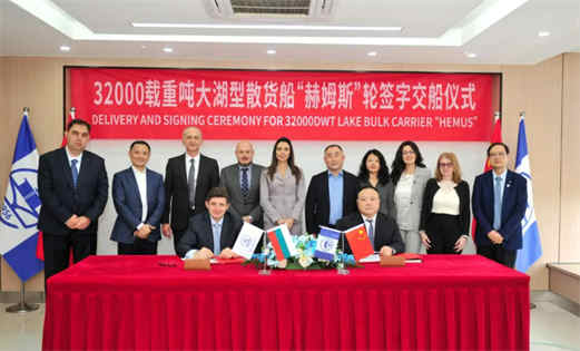 “HEMUS”轮是扬子江船业集团建成交付给保加利亚国航的第23艘新船,也是最新批次3艘32000DWT大湖型散货船中的首制船。该船自2025年6月开工建造,含春节建造周期共计290天。