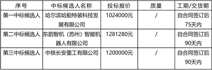 沪东中华造船(集团)有限公司爬壁式弧刨机器人、移动式弧刨机器人中标候选人公示